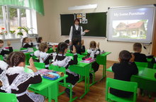 Сегодня в нашей школе в рамках курса повышения квалификации учителей начальных классов был проведен республиканский семинар по теме "Методологические и педагогические аспекты внедрения ФГОС в начальном и общем образовании". Учителя посмотрели урок математики в 1 классе по теме "Цифра 2" (учительница Гатауллина Гулия Фиргатовна), урок английского языка во 2 классе по теме "Дом.Предметы мебели" (учительница Загриева Гульназ Мансуровна), урок татарского языка в 4 классе по теме "Тамыр һәм кушымча"( учительница Рамазанова Фаузия Рафиловна).