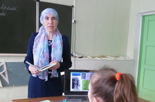 Татар теле һәм әдәбияты атналыгында укытучы Габдрахманова Л.М. 7 нче класста татар әдәбиятыннан Ф.Кәрим иҗатына багышланган ачык дәрес үткәрде. Дәрестә Ф.Кәримнең тормыш юлы һәм Бөек Ватан сугышы чоры иҗаты турында презентация күрсәтелде, музей материалларына күзәтү ясалды.