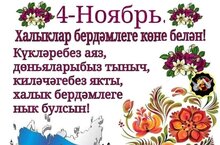 Халыклар бердәмлеге көне 04.11.2023 4 ноябрь - Халыклар бердәмлеге көне. Бу бәйрәмнең тарихы ерак гасырларга барып тоташа. Ул тынычлык, иминлек, бәйсезлек өчен бердәмлек символын чагылдыра Ул безне бердәм булырга, ата- бабаларыбызның каһарманлыгын хөрмәт итәргә өйрәтә.