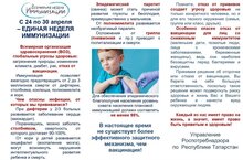 С 24 апреля по 30 апреля 2025 году пройдет Единая неделя иммунизации (ЕНИ-2025) в Республике Татарстан, направленная на повышение осведомленности населения о профилактике инфекционных заболеваний с помощью профилактических прививок, которая еще раз подчеркивает значимость вакцинации для обеспечения здоровья и благополучия людей.