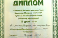 Районара Мөхәммәт Мәһдиев укуларында мәктәбебез укучысы Хәйретдинова З.Р. катнашты. Аның фәнни- эзләнү эше югары бәяләнеп, 3 урынга лаек булды. Җитәкчесе татар теле һәм әдәбияты укытучысы Нуриева Т.Г. Котлыйбыз!!!