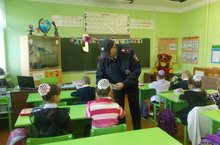 Бүген мәктәбебезгә полициянең участок инспекторы Ленар Альтафович Хисамиев килде. Ул балалар белән юл йөрү, җәмәгать урыннарында үз-үзеңне тоту һәм кичке сәгатьләрдә урамда булу кагыйдәләре турында сөйләшү алып барды. Сәбәпсез дәрес калдырмаска, тәртип бозмаска кирәклеген тагын бер кат яхшылап аңлатты. Ленар Альтафович 1 нче класс укучылары белән әңгәмәдән соң аларга җәяүлеләр өчен яктылык кайтаргыч эмблемалар тапшырды.