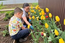 Укучылар өйләре янындагы бакчаларда әти-әниләре белән бергәләп гүзәллек тудыралар. Түтәлләр чәчүгә әзер, күпьеллык гөлләр чәчәк атып, тирә-якны бизәп утыра, күзләрне иркәли.