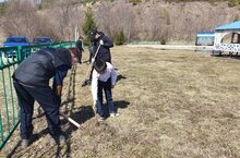Мәктәп тирәсендә, бакчада чистарту эшләре бара. Агачларның, куакларның картайган ботакларын кисәбез, чүп-чарны җыештырабыз. Чисталык саклау, тирә-якны матурлау - һәркемнең бурычы.