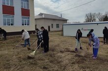 Бүген волонтерлар һәйкәл янын чистарттылар. -