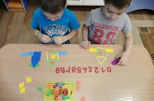 Максат: 1 дән 10 кадәр һәм кирегә санауны кабатлау. Саннарны тәртип буенча урнаштыру. Геометрик фигураларның исемнәрен атау. Алардан төрле рәсемнәр төзү.