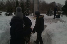1 нче февраль көнне 7-8 нче сыйныф укучылары, клуб янына һәйкәл чистартырга менделәр. Алар анда көрәкләр, себеркеләр һәм башка кирәк - ярак әйберләр алып килделәр. Кайсы кар көрәде, кайсы себерде дигәндәй, берсе дә эшсез басып тормады. Бергә - бергә эшләве дә бик күңелле булды, шулай ук һәйкәл дә кардан арынды.