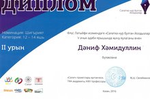 Из 350 заявленных участников 51 финалист удостоился наград. Им вручили дипломы и фирменные подарки. Среди них оказался и учащийся 7 класса нашей школы Хамидуллин Даниф Данисович (руководитель учительница татарского языка и литературы Хамидуллина З.Я.) В номинации “Поэзия” (категория:12-14 лет) он занял почетное 2 место. Поздравляем!
