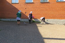 Бүген мәктәбебездә өмә үткәрелде. Мәктәп яны чистартылды, тәртипкә китерелде, юл кырыйларындагы чүп үләннәре чабылды, бакчадагы эшләр эшләнде.