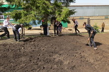 На пришкольном участке началась работа: сегодня обучающиеся школы вскопали почву.