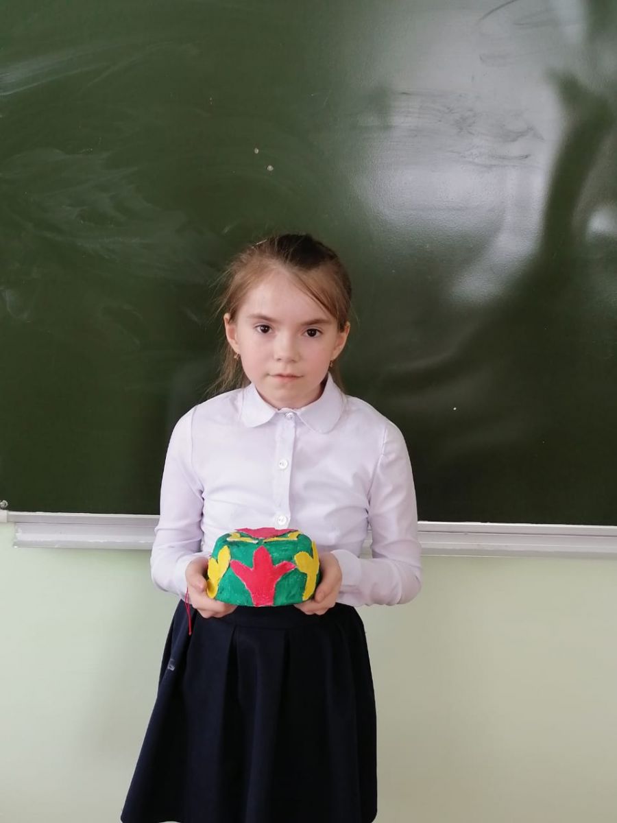 Татарстан Республикасында туган телләр һәм халыклар бердәмлеге елы уңаеннан башлангыч класс укучылары технология дәресләрендә милли бизәкләр кулланып төрле эшләнмәләр эшлиләр.Бу эшләргә әти-әниләр дә тартыла. 2нче класс укучысы Шәмсиева Язилә әнисе белән тозлы камырдан түбәтәй ясады.