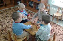 Беренче кечкенәләр төркеме балалары режим моментларында өстәл уеннары уйнарга яраталар. Алар уенчыкларны саклап, ватмыйча уйнарга күнегәләр. Шулай ук уй-фикерләре үсә,кызыксынучанлык арта. Нинди генә уенчыклар юк монда. Һәр уенчык үз яшенә туры китереп алынган.
