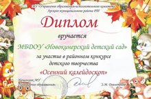 Район күләмендә оештырылган "Осенний калейдоскоп" конкурсында актив катнашкан өчен балалар бакчасы коллективы диплом белән бүләкләнде. Хөрмәтле ,тәрбиячеләребез! Сезгә катлаулы һүм авыр хезмәтегездә иҗади уңышлар телибез.