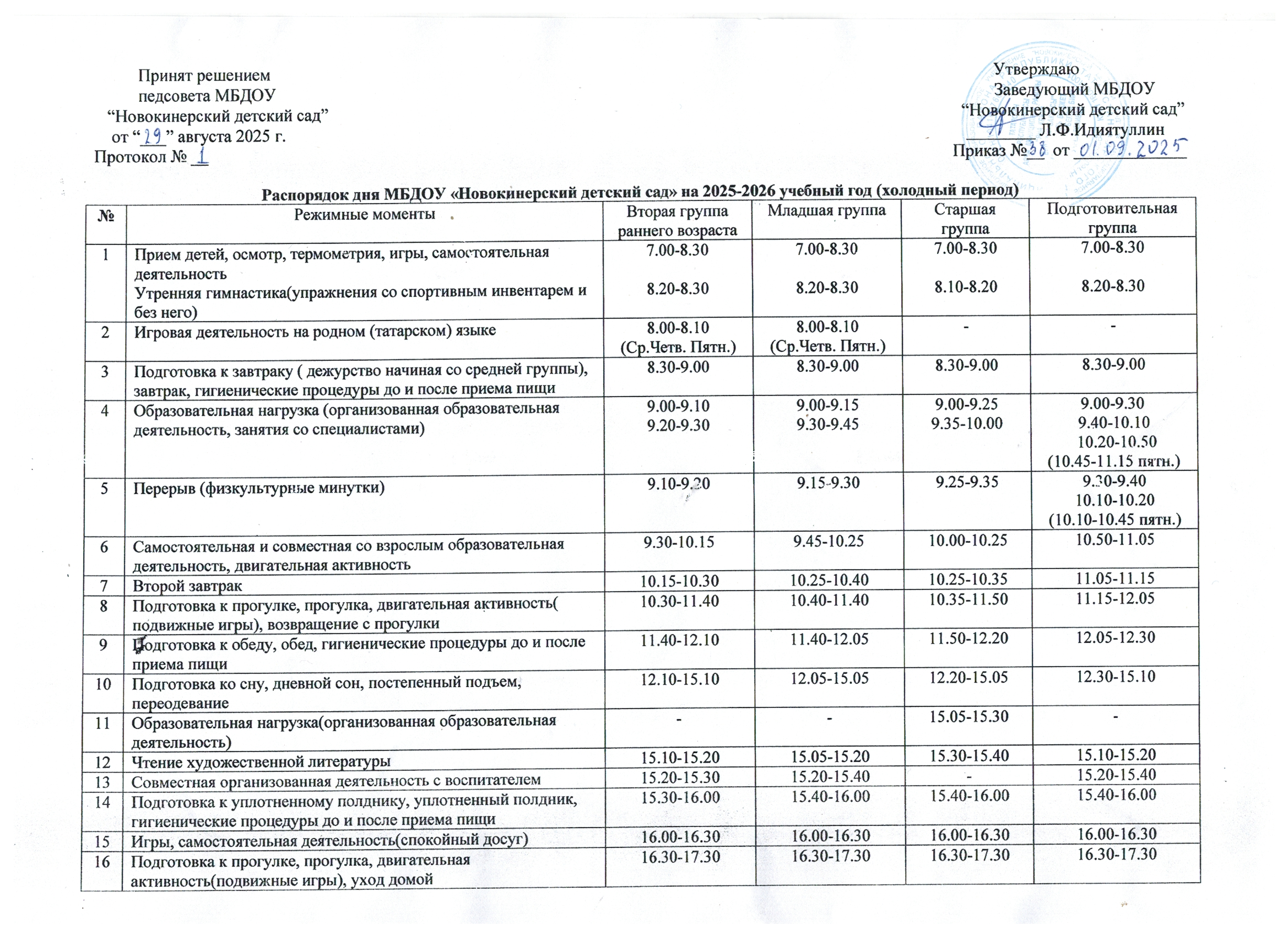 Режим дня воспитанников 2025-2026 учебный год