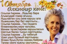 Хөрмәтле өлкәннәребез! Сезне чын күңелдән бәйрәм белән тәбрик итәбез! Сезгә ныклы сәламәтлек, иминлек, бәхетле картлык телибез! Мәктәбебезнең бүгенге көндә ирешкән уңышларында сезнең дә өлешегез бик зур. Рәхмәт сезгә!