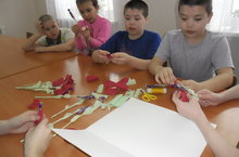 15 марта Григорьева Г.Н. в рамках «Недели добрых дел» с детьми 6 ой группы сделали поделки на тему «Добрые руки не знают скуки». Дети изготовили подарок ветеранам школы. Они активно принимали участие при изготовлении поделок и сделали красивые, разноцветные розочки. Готовые подарки дети вручат 17 марта во время мероприятия «Встреча с ветеранами школы-интерната»