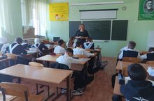 10-11 класс егетләре Арчада Донецкое высшее командное общевойсковое училищедан килгән офицерлар белән очрашудакатнаштылар.