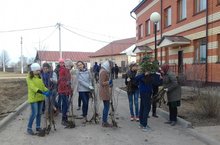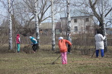 Мәктәп янын чистарту эшләре дәвам итә.Укучылар кипкән яфракларны себерделәр,агач төпләрен йомшарттылар.