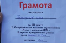 Бүген, 21.09.24 көнне "Татарстан кроссы-2024" узды, әлеге кросста безнең мәктәп укучылары да катнашты. 11 класс укучысы Галимҗанов Ирек 3 урынны яулады. Тренер: Хәйруллин З. Т. Аларны чын күңелдән котлыйбыз.