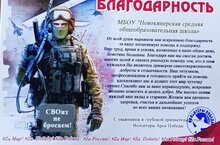 Махсус хәрби операциядә хезмәт итүче солдатларыбызга актив рәвештә ярдәм итеп торганы өчен, мәктәбебез Арча Волонтерларының рәхмәт хаты белән бүләкләнде