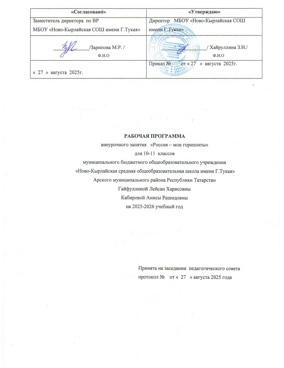 Рабочая программа курса внеурочной деятельности «Россия – мои горизонты»