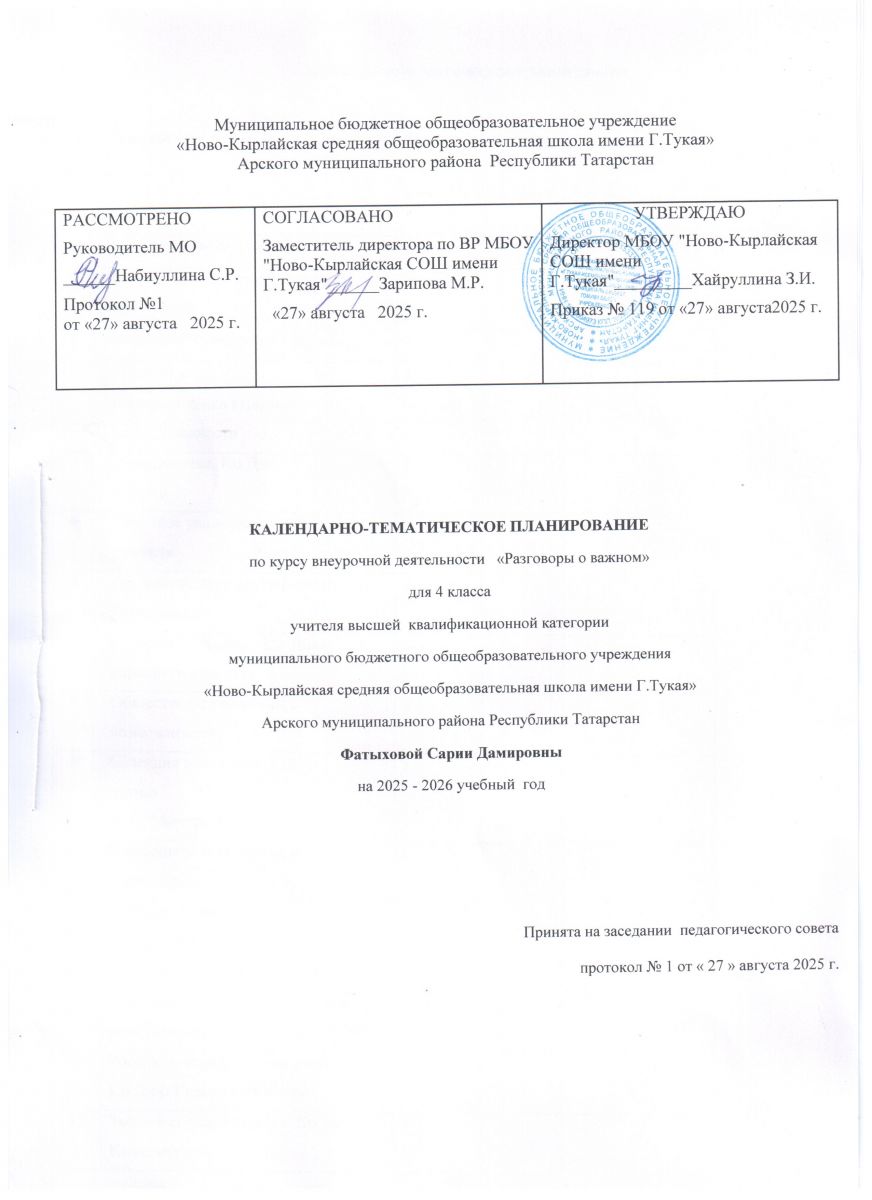 Рабочая программа курса внеурочной деятельности «Разговоры о важном» для 4 класса