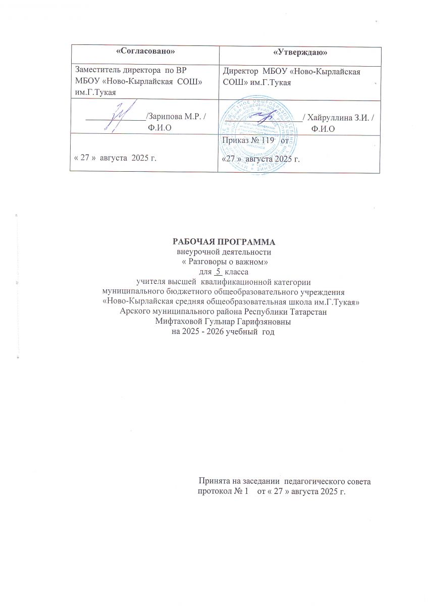 Рабочая программа курса внеурочной деятельности «Разговоры о важном» для 5 класса