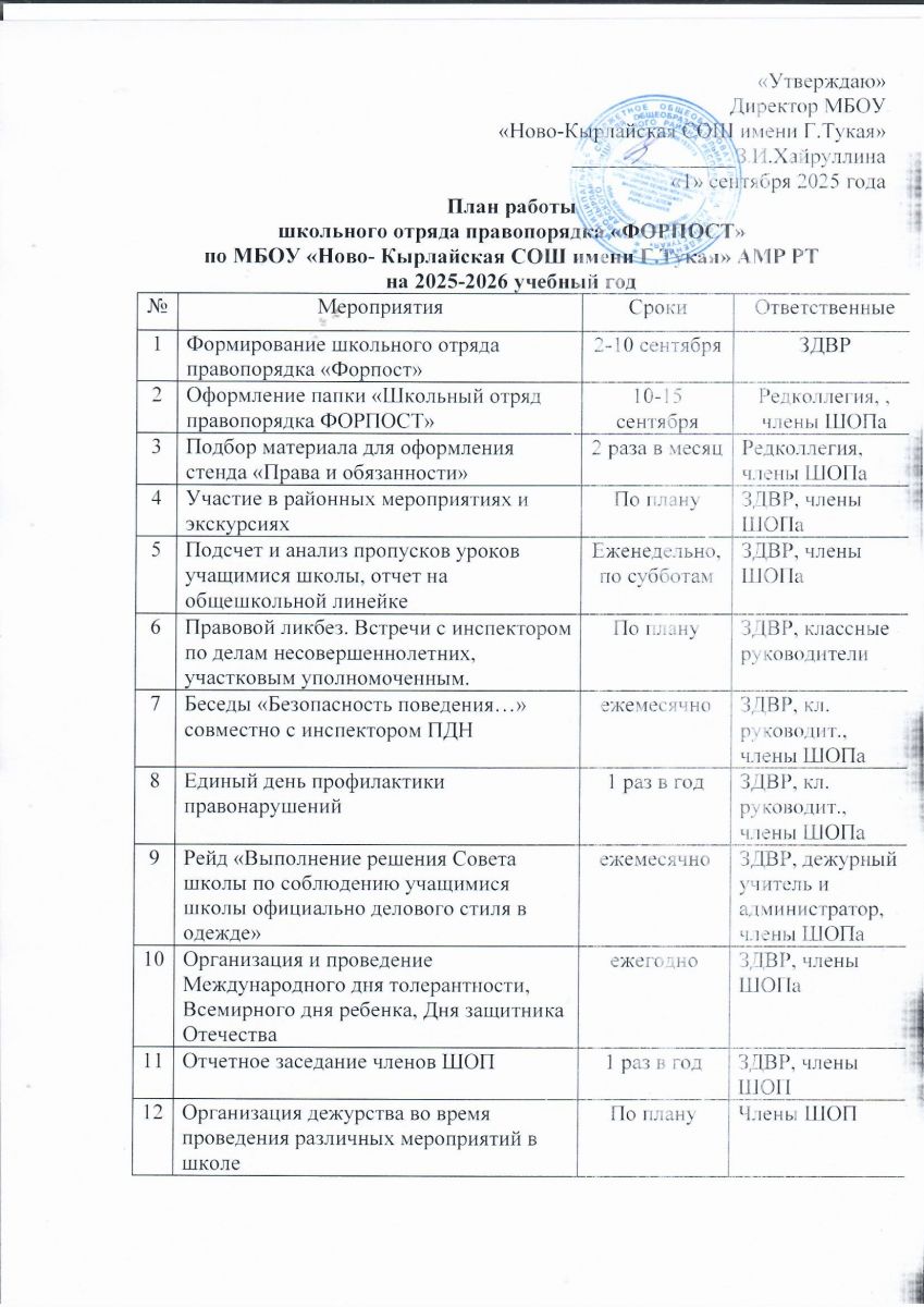 План внеурочной деятельности на уровень основного общего образования на 2025 - 2026 уч.год