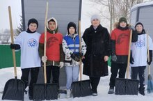 1 нче февральдән 28 нче февральгә кадәр мәктәбебездә хәрби-патриотик тәрбия айлыгы бара. Шул уңайдан, төрле балалар оешмасында торучы укучылар белән авылыбыз уртасында урнашкан һәйкәлне кардан чистартып кайттык.