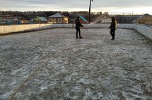 Мәктәп яны хоккей тартмасында боз ясау эшләре башланып китте.
