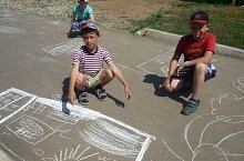 Бүген лагерьда тәрбияләнүче укучылар асфальтта рәсемнәр ясадылар. Рәсем ясарга теләк белдерүчеләр күп булды. Рәсем эчтәлеге укучыларның тынычлык турындагы теләк-омтылышларын яктыртырга тиеш иде. Иң яхшы рәсем ясаучылар билгеләнеп, аларга кечкенә генә бүләкләр дә тапшырылды.