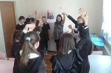 Мәктәптә Арча педагогия көллияте студентлары практика уза. Булачак педагоглар укучыларның мәктәп тормышын күңелле итәргә тырыша, тәнәфес вакытларында да хәрәкәтле уеннар оештырыла.