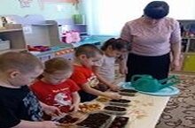 Балалар белән борчак,арпа,солы чәчтек,суган утырттык. Су сибеп үскәннәрен күзәтәбез.