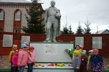 Сугышта һәлак булган бабаларыбызга куелган һәйкәлгә чәчәкләр куеп кайттык.