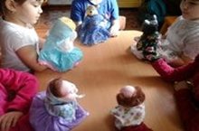 Курчаклар ярдәмендә төрле үзебез яраткан әкиятләрне сәхнәләштерәбез.Үзара дус-тату булырга, бер-береңә ярдәм итәргә, сәнгатьле сөйләм теленә өйрәнәбез.