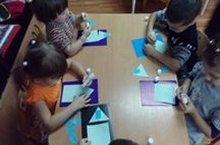 Максат: Киң тасманы күз белән чамалап шакмакларга кисү яки кирпечләр кисү.Квадратны диогональ буенча ике өчпочмак чыгарлык итеп кисү. Геометрик фигураларны танып әйтү, кисеп ябыштыруга теләк уяту,үз эшеңне ахыргача ңиткерергә кирәклеген төшендерү.