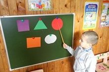 Урындыклардан ясалган поезд, урман рәсеме, геометрик фигуралар, предметлар рәсемнәре, таякчыклар, санлы һәм рәсемле карточкалар.
