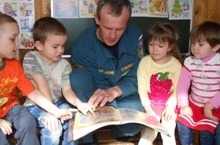Арча янгын частенда эшләүче бүлек командиры балалар белән очрашуга бакчабызга килде.Ул үзе белән янгын сүндерүче хезмәткәренең тулы комплектын алып килеп,балалар белән әңгәмә корды, янгынны ничек булдырмаска, кайсы җиһаз ни өчен кирәк, ничек кулланыла барысын да тәфсилләп сөйләп аңлатты, бүләкләрен тапшырды.Балалар бик рәхмәтле булдылар, ясаган рәсемнәре белән таныштырдылар, Булат Харис улына рәхмәтләрен җиткерделәр.