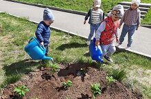 Бакчабыз мәйданчыгындагы чәчәкләргә матур булып үссеннәр дип, көн дә су сибеп торабыз, аларның үсүләрен күзәтәбез.