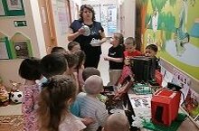 30 апрель көнне балалар бакчасына "Янгын сүндерү бүлеге" хезмәткәре Хәкимуллин Азат Мөхтәр улы килде.Ул балаларга янгын куркынычсызлыгы турында сөйләде. Балаларның сорауларына җавап бирде,аларның сөйләгәннәрен тынлады. Авыл җирлеге башлыгы Шакирова Ильфира Рамазан кызы да янгынны булдырмау буенча үзенең киңәшләрен бирде.Бик кирәкле,файдалы очрашу булды. -