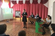 В начале урока учитель русского языка и литературы объяснила, почему 2018 год объявлен Годом Л.Н.Толстого в Республике Татарстан, познакомила с указом президента.