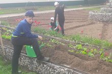 Мәктәп яны тәҗрибә участогында укучылар җәй буе эшлиләр.