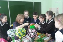 Тиздән халыкара хатын-кызлар көне якынлаша. Шул уңайдан һәр класс әниләрне котлау өчен концерт номерлары һәм бүләкләр әзерли. 4 класс укучылары класс җитәкчеләре Гөлфия Дәминовна белән топиарий ясыйлар.