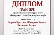 В период с 13 января по 18 марта 2025 года проходила республиканская конкурс-акция "Говорящая стена. Миру нужен мир". Согласно положению конкурса команда школы должна провести акцию в течении дня или недели Наша школа приняла активное участие с привлечением образовательных учреждений и общественности. Мы побывали в 5 школах и осветили свои мероприятия в номинации "Мир нужен всем". В итоге мы - номинанты ГРАН-ПРИ
