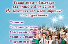 Объявляется набор учащихся на отделение Театр моды "Асылъяр" для детей с 6 до 15 лет.