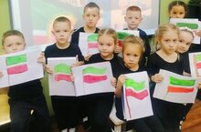 Ребята не только узнали об истории создания флага, но и нарисовали собственные миниатюрные копии. -