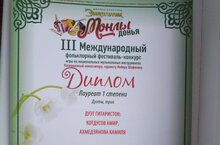 Кадырова Диана - Лауреат 3 степени (преп. Ганиева А.И., концертмейстер Асанова В.М.).