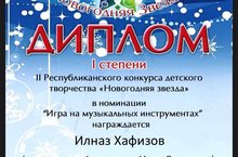 Арча балалар сәнгать мәктәбенең халык уен кораллары бүлеге укучысы Хафизов Ильназ, Мамадыш шәһәрендә узган "Яңа ел йолдызы" II Республика бәйгесендә уңышлы чыгыш ясап I дәрәҗә дипломына лаек булды. Җитәкчесе Фәхретдинов Н.Р. Котлыйбыз! -