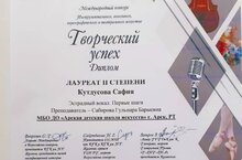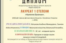 Поздравляем обучающихся народного отделения класса преподавателей Алеевой Милеушы Талгатовны и Гайнутдинова Альберта Салаховича с достойной победой в Международном фестиваль-конкурсе искусств "Золотая грация"(заочно) в г.Санкт-Петербург.