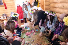 Стадионда беренче йортта масленица бәйрәменә багышланган мунчаладан курчаклар ясау буенча осталык дәресләре узды. Җитәкчесе Зөлфия Кочурова. -